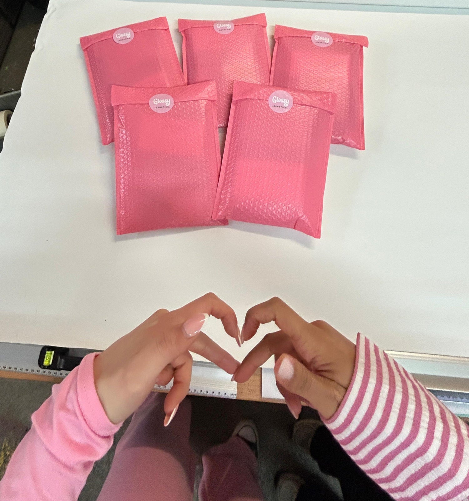 Glossy ist noch eine kleine Brand, und wir machen alles selbst – vom Packen bis zum Versand. Deshalb schaffen wir es momentan nur einmal pro Woche, ins Lager zu fahren und alle Bestellungen ready zu machen.